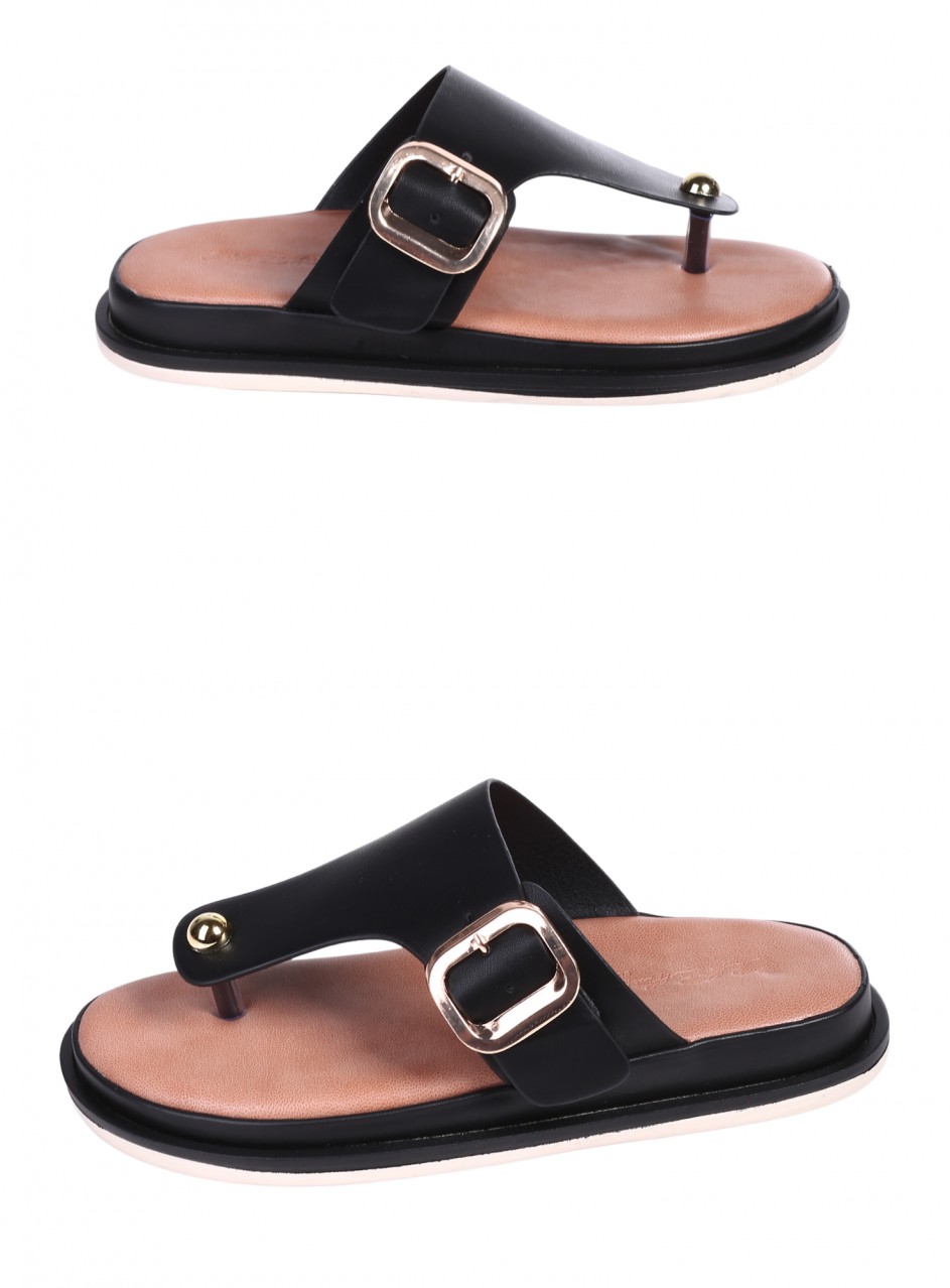 Papuci casual pentru femei, confecționați din piele ecologică. Disponibili în culoarea neagră, cu barete reglabile. Partea interioară este confecționată din piele ecologică și are o talpă confortabilă.